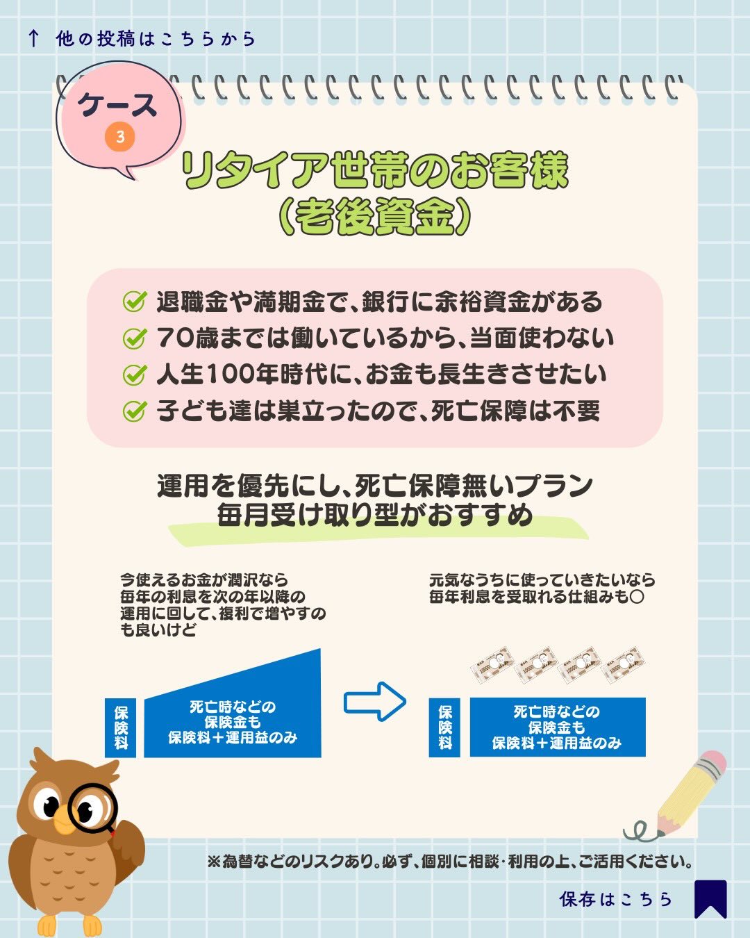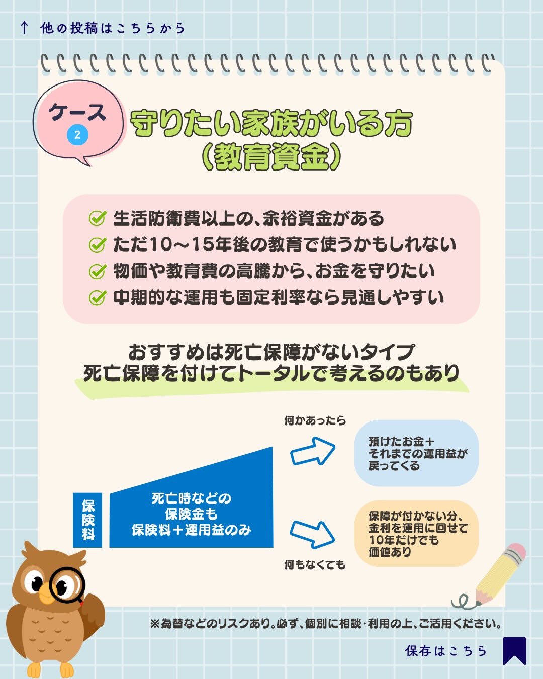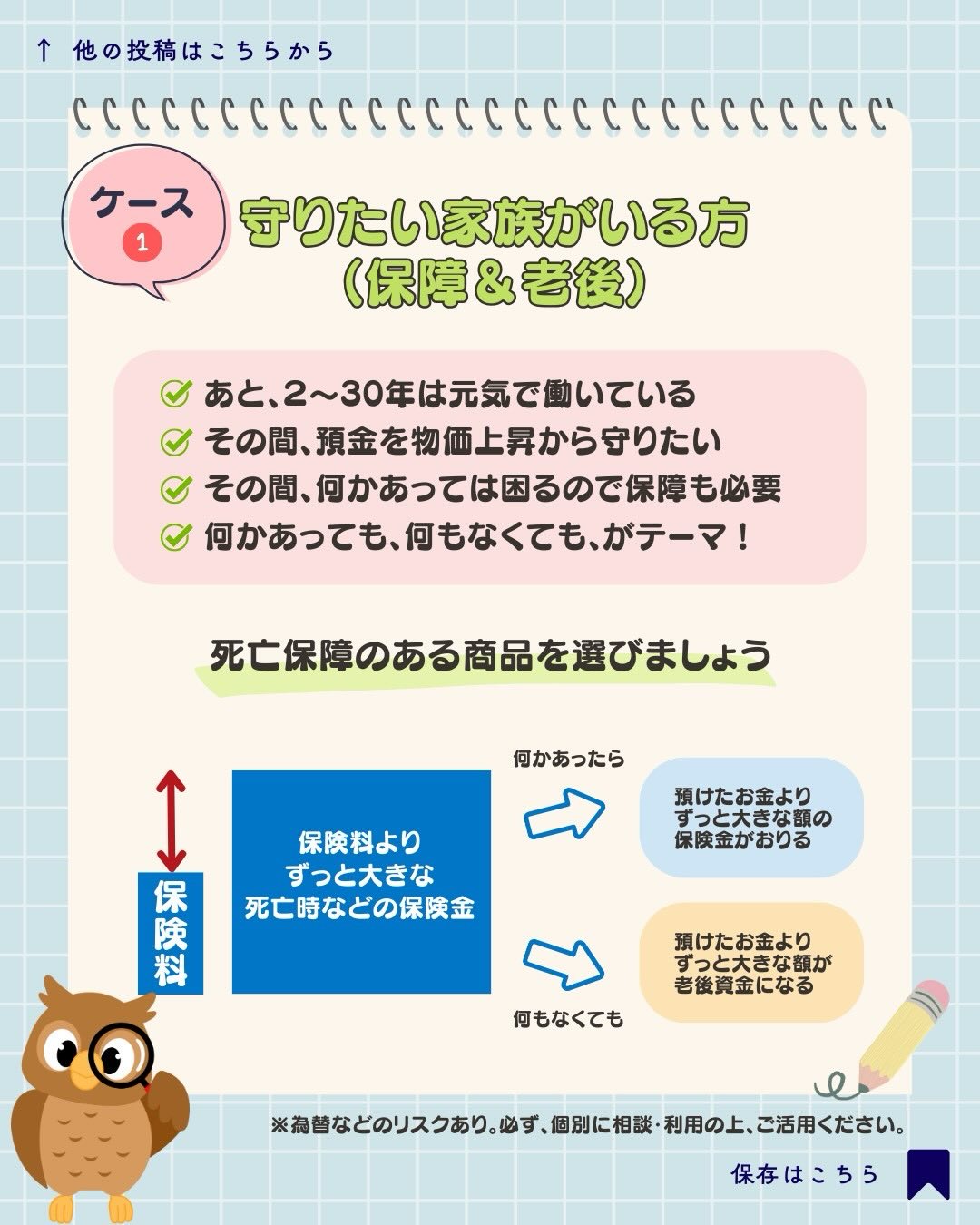 お金? 家族? 老後? 目的によってピッタリのタイプが変わります。